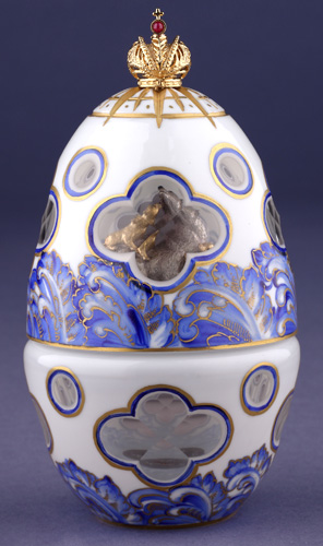 The Egg is created in crystal and is hand-painted and cut to resemble a ship upon the seas.